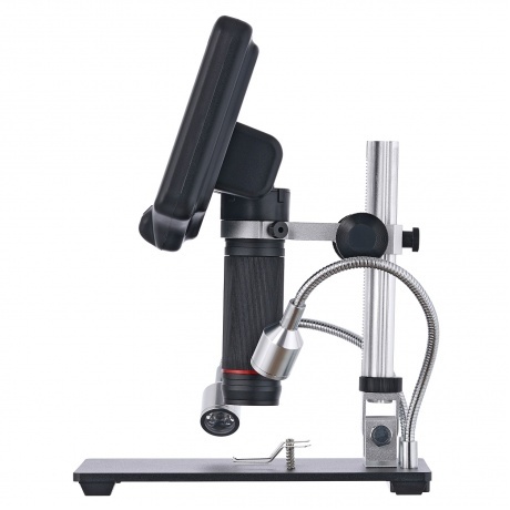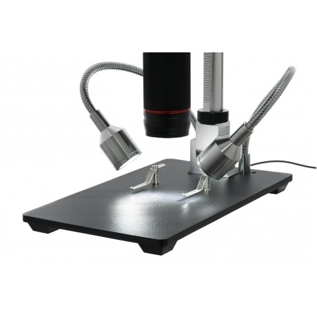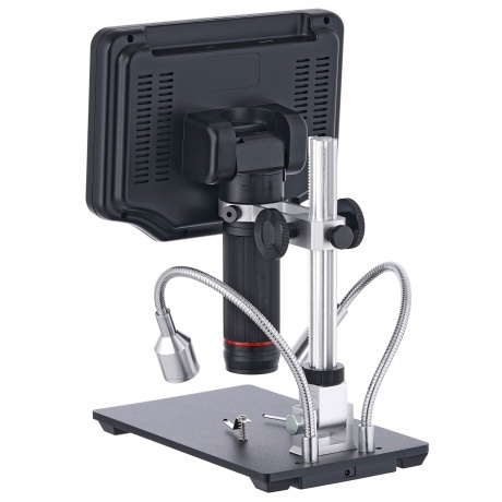 Микроскоп с дистанционным управлением Levenhuk DTX RC4 – это микроскоп для наблюдений и создания цифровых архивов с высококачественными фотографиями и видеороликами. Картинку можно выводить на внешний экран, а для управления использовать беспроводной пульт. Микроскоп удобен при работе в мастерской, сервисном центре или дома. Большой ЖК-экран с возможностью наклона. Микроскоп выводит изображение на встроенный экран. Это большой ЖК-экран с диагональю 7 дюймов (около 18 см). Картинка цветная, хорошо детализированная. При необходимости к прибору можно подключить монитор или телевизор через кабель HDMI (в комплекте). Для исследований можно применять цифровое или оптическое увеличение. Общий диапазон кратности составляет от 5 до 270 крат, оптический диапазон – от 5 до 40 крат. Микроскоп дает возможность фотографировать и записывать видео, причем в ультравысоком качестве. Для фотографий это разрешение 5600х4200 пикс, для видео – Ultra HD. Обратите внимание и на кадровую частоту роликов – от 24 до 120 кадров в секунду (зависит от выбранного разрешения). Запись ведется на карту памяти, которая не входит в комплект поставки. Подсветка находится над предметным столиком и реализована крайне интересно. Это два отдельно расположенных светодиода, закрепленные на гибких держателях. Благодаря этому свет можно направить на образец под любым углом, осветив даже труднодоступные области. Яркостью подсветки можно управлять при помощи переключателя на кабеле питания. Там же находится и кнопка включения/выключения прибора. Для управления микроскопом можно использовать кнопки на корпусе или беспроводной пульт. В пульт заложено много функций, поэтому работать с прибором удобно даже на удалении от него. С пульта можно регулировать яркость подсветки, настраивать увеличение, запускать запись видео, делать фотоснимки и многое другое. Основные особенности: Доступно оптическое и цифровое увеличение. Изображение выводится на встроенный ЖК-экран в цвете. Большая диагональ (7 дюймов), возможность наклона экрана. Фотографирование и видеозапись в ультравысоком разрешении. Подключение к внешним устройствам: монитору или телевизору. Подсветка представлена светодиодами на гибких держателях. Пульт дистанционного управления дает доступ к множеству функций – удобно при проведении групповых наблюдений. Комплектация: ЖК-экран, штатив, основание с зажимами, осветители на гибких держателях, инфракрасный пульт дистанционного управления, ультрафиолетовый фильтр, кабель питания с переключателем и регулятором яркости подсветки, кабель HDMI, сетевой адаптер, инструменты и крепеж, инструкция по эксплуатации и гарантийный талон.