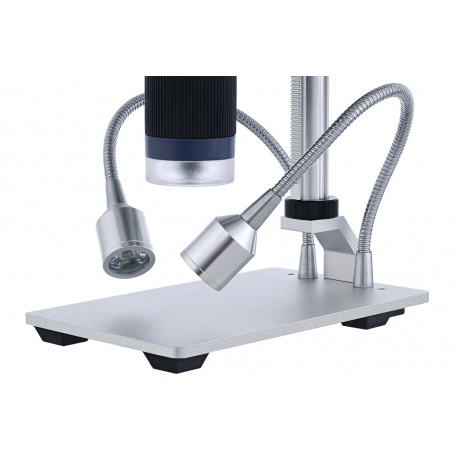 Микроскоп с дистанционным управлением Levenhuk DTX RC1 – это не только отличные оптические возможности, но и новый уровень удобства управления. Для работы с прибором можно использовать кнопки на корпусе или беспроводной пульт. Микроскоп станет отличным помощником в ремонте электроники, оценке ювелирных изделии и диагностике поломок часовых механизмов. Он также пригодится для проведения презентаций и лекций. За формирование изображения отвечает объектив, дальше картинка выводится на цветной встроенный ЖК-экран. Его диагональ составляет 4,3 дюйма (приблизительно 11 см). Также картинку можно вывести на внешний экран, для чего понадобится подключить микроскоп к компьютеру и использовать одну из популярных программ захвата изображения. Образцы можно изучать на увеличении от 3 до 220 крат (диапазон оптического увеличения: 3–55 крат). Кроме того, все исследования можно записывать на карту памяти (приобретается отдельно) в фото- или видеоформате. Качество записи высокое – Full HD для видео и 12 Мпикс для фото. Подсветка предметного столика реализована очень интересно. Во-первых, есть светодиоды внутри объектива. Во-вторых, две лампочки закреплены на гибких держателях, которые можно поворачивать под разными углами. Такое сочетание источников освещения позволяет выставлять свет максимально точно и удобно для наблюдений. Яркость подсветки можно регулировать. Для управления микроскопом можно использовать кнопки на корпусе или дистанционное управление. Один управляющий элемент расположен на кабеле питания – переключатель позволяет регулировать яркость подсветки двумя кнопками и отвечает за включение/выключение прибора. Есть и беспроводной инфракрасный пульт. Его функции: уменьшение и увеличение кратности, фотографирование, запись видео. Этот пульт незаменим в ситуациях, когда важно сделать четкий кадр: любое лишнее прикосновение к микроскопу может сбить настройки оптики, а пульт позволяет вести съемку со значительного расстояния. Основные особенности: Доступно оптическое и цифровое увеличение. ЖК-экран передает цветное изображение. Можно фотографировать и записывать видео в высоком разрешении. Картинку с объектива можно передавать на экран компьютера. Подсветка представлена светодиодами на гибких держателях и внутри объектива. Для управления можно использовать беспроводной пульт. Комплектация: микроскоп с ЖК-экраном, инфракрасный пульт дистанционного управления, ультрафиолетовый фильтр, кабель питания с переключателем и регулятором яркости подсветки, кабель USB, сетевой адаптер, батарейка CR2025, стикер 3М, инструкция по эксплуатации и гарантийный талон.