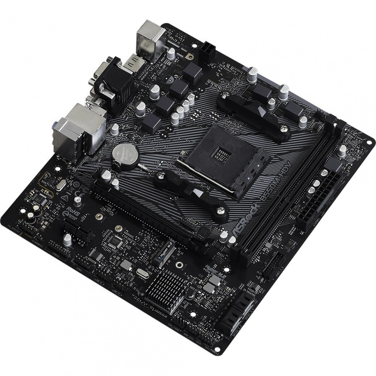 Если вы мечтаете о высокой производительности вашего стационарного компьютера, обратите ваше внимание на материнскую плату ASRock B550M-HDV. Представленная модель, выполненная в форм-факторе Micro-ATX, имеет габариты 230x201 мм. Ее можно установить в подавляющее большинство существующих корпусов. Предусмотренная в данной материнской плате технология ASRock Full Spike Protection убережет ее от внезапных скачков напряжения, избавив от сбоев в работе всей системы. Устройство сконструировано на чипсете AMD B550, предусмотрены два слота под плашки оперативной памяти DDR4-типа с частотой в диапазоне от 2133 МГц до 4733+ МГц. Их суммарный объем может достигать 64 ГБ.