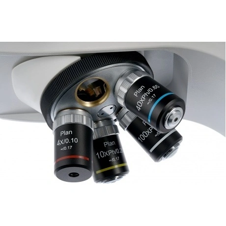 Тринокулярный микроскоп Levenhuk MED D45T с 16-мегапиксельной камерой – это возможность вести визуальные наблюдения и одновременно записывать исследования в фото- или видеоформате. Микроскоп идеально подходит для профессиональной работы в лаборатории, создания цифровых архивов, ведения сложных микробиологических исследований. Он позволяет использовать фазово-контрастную микроскопию, методы светлого и темного поля, масляную иммерсию и освещение по Келеру. Возможности микроскопа оценят специалисты научно-исследовательских центров, медицинских учреждений, высших учебных заведений. Микроскопы Levenhuk серии MED 45 снабжены оптической системой, скорректированной на бесконечность, которая применяется в микроскопах профессионального и высокого класса. Эта система включает объективы класса Infinity PlanAchromat и позволяет получать чистые, высококонтрастные изображения с высокой степенью плоскостности. Особенности: Тринокулярный микроскоп с увеличением от 40 до 1000 крат. Фазовые планахроматические объективы, скорректированные на бесконечность. Широкопольные окуляры с диоптрийной коррекцией. Фазовый конденсор с темным полем. Светодиодная подсветка с регулировкой яркости. Возможность настройки освещения по методу Келера. Цифровая камера 16 Мпикс в комплекте. Комплект поставки: стойка микроскопа с основанием, тринокулярная поворотная на 360° насадка, объективы фазовые, планахроматические, скорректированные на бесконечность: 4x, 10x, 40xs, 100xs (масляный) с антигрибковым покрытием, окуляры широкопольные: WF10x/22 мм с антигрибковым покрытием (2 шт.), фазово-контрастное устройство (темное поле), фильтры: синий, зеленый, желтый, флакон с иммерсионным маслом, предохранитель (2 шт.), сетевой шнур питания для микроскопа, пылезащитный чехол, цифровая камера 16 Мпикс, адаптер-переходник для камеры, крепление для камеры, USB-кабель для подключения и питания камеры, компакт-диск с ПО и драйверами, инструкция по эксплуатации и гарантийный талон.