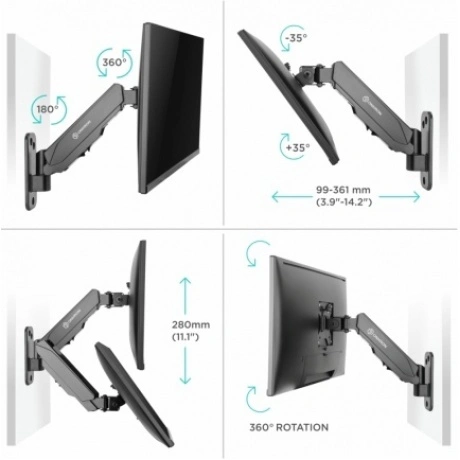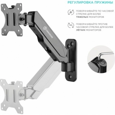 Настенный наклонно-поворотный кронштейн для монитора, выполненный по технологии газлифт, ONKRON G120 подходит для мониторов и телевизоров диагональю от 13 до 34 дюймов (33,02– 86,36 см) и весом от 1 до 8 кг. Механизм с возвратной пружиной и газовым амортизатором, располагающийся внутри корпуса кронштейна, даст возможность легко перемещать монитор в любую нужную Вам позицию. Прочная конструкция из алюминия надежно удержит Ваш монитор. Кронштейн ONKRON G120 поможет вам освободить место на рабочей поверхности. Это стильное крепление станет хорошим решением для вашего дома или офиса.