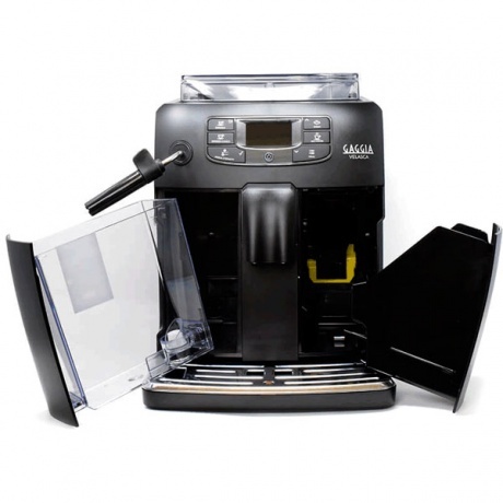 Кофемашина Gaggia Velasсa Black располагает функциями регулировки крепости, температуры и объема, доступ к которым производится посредством тактовых элементов. Корпус включает в себя встроенный дисплей, незаменимый для отслеживания текущих процессов. Благодаря увеличенной до 1850 Вт мощности на приготовление напитка уходят считанные минуты. В модели Gaggia Velasсa Black предусмотрены контейнер для отходов и лоток для сбора остаточной жидкости. Засыпав необходимый объем зерен в соответствующий резервуар, пользователь получит свежемолотый ароматный кофе необходимой степени помола. Благодаря ручному капучинатору у вас появится возможность наслаждаться напитком с крепкой молочной пеной.