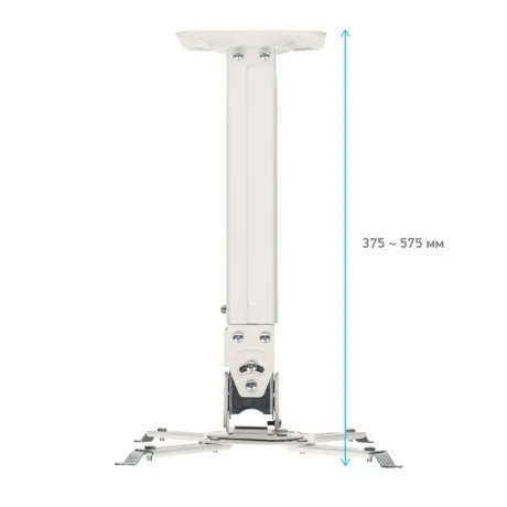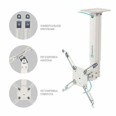 Потолочно-настенный кронштейн ONKRON K5A подходит для большинства современных проекторов весом до 10 кг. Удобная система крепления поможет зафиксировать кронштейн на стене и сделать это легко и быстро, сэкономив время и силы. Крепкий и прочный, при этом элегантный кронштейн белого цвета станет прекрасным дополнением интерьера. Выбор ширины крепления к кронштейну. Особая конструкция основания кронштейна и ряд монтажных отверстий позволят выбрать удобный вариант установки в диапазоне от 100х100 до 325х325 мм. Значительный вылет от потолка. Возможность выдвинуть кронштейн на расстояние от 37,5 до 57 см и зафиксировать проектор в нужном положении. Угол наклона от -20° до +20°. Надёжная конструкция без усилий позволит осуществить наклон проектора одним движением руки. Угол поворота 20°. Вы можете с лёгкостью отрегулировать положение проектора, немного повернув его. Установка на стену. Конструкция кронштейна предусматривает возможность крепления к стене под углом 90°, а площадка крепления размером 134х104 мм надежно удержит проектор.