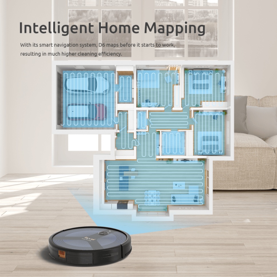 Робот-пылесос Kyvol D6Пылесос 2 в 1: брызги воды на пол больше не будут беспокоить вас - D6 подметает и моет швабру одновременно, насколько эффективно!150 минут сверхдлительной работы: D6 может работать до 150 минут всего за один раз, что идеально подходит для больших домов!Кроме того, он автоматически перезаряжается, когда батарея разряжается, умно и удобно!Интеллектуальное картографирование дома: благодаря своей интеллектуальной системе навигации D6 составляет карту еще до того, как начнет работать, что приводит к гораздо более высокой эффективности уборки.