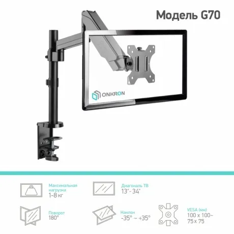 Описание товара Кронштейн для мониторов Onkron G70 (макс.8кг) черный