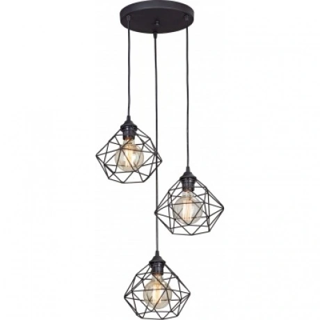 Подвесной светильник будет отлично смотреться в гостиной, кухне, офисе в стиле лофт. Светильник имеет 3 плафона из черного металла с цоколем 3xE27. Питание от сети 220V, общая максимальная мощность 120W позволяет осветить площадь до 6 кв. м.