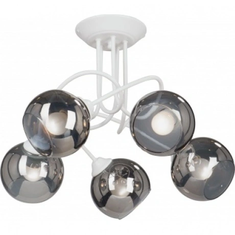 Потолочная люстра будет отлично смотреться в гостиной, кухне, кабинете, офисе в стиле хай-тек. Люстра имеет 5 плафонов из черного стекла с цоколем 5xE27. Питание от сети 220V, общая максимальная мощность 200W позволяет осветить площадь до 10 кв. м.