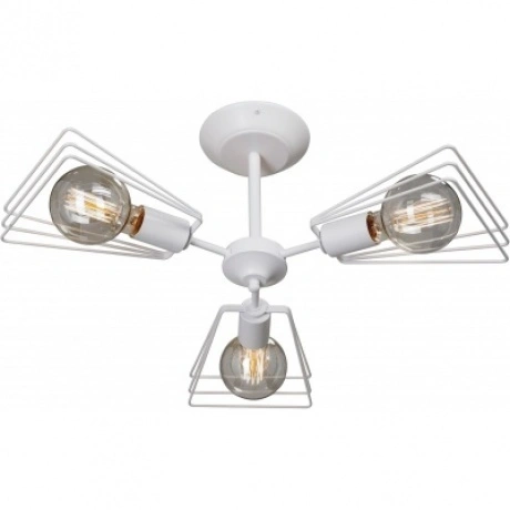 Потолочная люстра на штанге будет отлично смотреться в гостиной, спальне, кухне в стиле лофт. Люстра имеет 3 плафона из белого металла с цоколем 3xE27. Питание от сети 220V, общая максимальная мощность 120W позволяет осветить площадь до 6 кв. м.