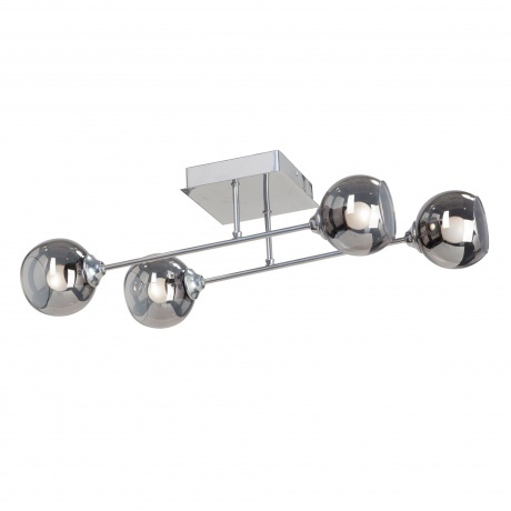 Потолочная люстра на штанге будет отлично смотреться в гостиной, спальне, кухне в стиле арт-деко. Люстра имеет 4 плафона из черного стекла с цоколем 4xE27. Питание от сети 220V, общая максимальная мощность 160W позволяет осветить площадь до 8 кв. м.