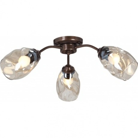 Потолочная люстра будет отлично смотреться в гостиной, спальне, кухне в стиле арт-деко. Люстра имеет 3 плафона из прозрачного и серого стекла с цоколем 3xE27.