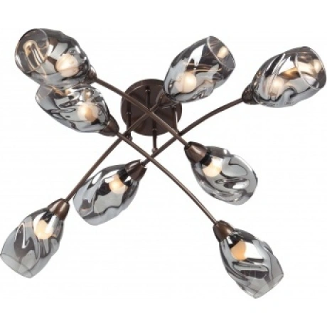 Потолочная люстра будет отлично смотреться в гостиной, спальне, кухне в стиле арт-деко. Люстра имеет 8 плафонов из прозрачного и черного стекла с цоколем 8xE27. Питание от сети 220V, общая максимальная мощность 320W позволяет осветить площадь до 16 кв. м.