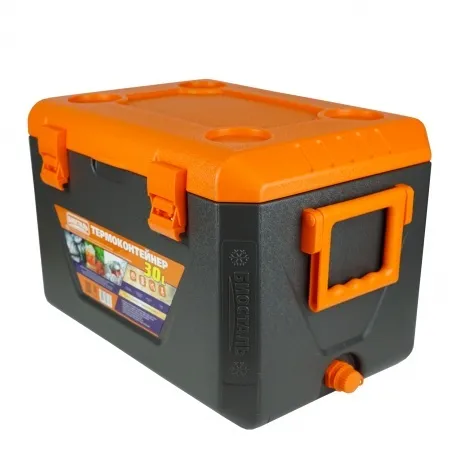 Термоконтейнер CB-30G объёмом 30 литров - это ваш незаменимый спутник в любом путешествии и не только. Двойная изоляция крышки и корпуса BTherm Plast позволяет не беспокоиться о сохранности нужной температуры внутри. Имеет ударопрочный корпус, надёжные складные ручки, сливной клапан с винтовой пробкой и продуманные замки. Подходит для хранения и транспортировки замороженных и охлаждённых продуктов: рыбы, мяса, кондитерских изделий, мороженого, фруктов и овощей, напитков, молочных продуктов и фармацевтических изделий. Производится из пластика разрешенного для применения в пищевой промышленности. Метод производства-воздушная формовка с двойными стенками, которые заполняются изоляционным наполнителем из вспененного полиуретана.