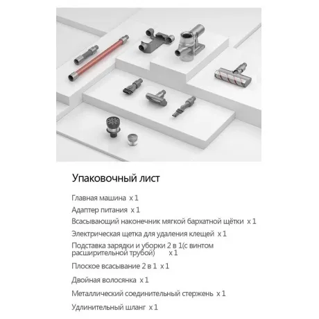 Xiaomi Dreame V11 Vacuum Cleaner представляет собой обновленную модель ручного пылесоса, который получил бесщеточный мотор Space 4.0 со скоростью вращения 125000 об/м и мощностью в 450 Вт, увеличенной емкости аккумулятор 3000 мАч, позволяющий работать до 90 минут, а также цветной информационный OLED-дисплей и циклонный фильтр с 12 конусами. Теперь с помощью данной модели можно выполнять и влажную уборку, используя специальный бак для заливки воды, расположенный в насадке для основной щетки. Также комплектом предусмотрена моторизированная щетка с дополнительным двигателем, приводящим в движение валик и позволяющим проникать глубоко в ворс ковра, эффективно удалять пыль, частицы отмершей кожи и даже клещей. Ручной беспроводной пылесос Xiaomi Dreame V11 Vacuum Cleaner обладает компактной, эргономичной конструкцией. Встроенный перезаряжаемый аккумулятор позволяет осуществлять уборку в течение 90 минут в стандартном режиме, а небольшой вес модели позволит взять ее с собой в гараж для уборки салона автомобиля или детского кресла. Пылесос имеет бесконтактный способ очистки полулитрового пылесборника, а смена насадок не требует каких-либо дополнительных усилий. Для восстановления заряда батареи в комплекте идет поворотный держатель с зарядной базой, который крепится вертикально на стену и также позволяет хранить насадки в одном месте. Полная зарядка батареи составляет 4 часа. Пылесос Xiaomi Dreame V11 Vacuum Cleaner оснащен продуманной воздушной туннельной системой, которая обеспечивает мощность всасывания до 150 Aw, позволяя удалять с пола сор перед влажной уборкой, а также осуществляет пассивное охлаждение электромотора и аккумуляторного блока. Также в модели применена усовершенствованная семиступенчатая система шумопоглащения, основанная на особой подвеске высокомощного электродвигателя Space 4.0, а также шестиконусной конструкции из специального вспененного полимера Gedebao.