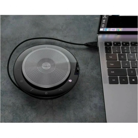 Стильное многофункциональное портативное устройство громкой связи 2 в 1: спикерфон для проведения конференций, и акустическая система для качественного воспроизведения мультимедиа. Jabra Speak 750 MS имеет лучшее в своем классе качество звука. Передача звука происходит одновременно с двух сторон, благодаря чему общение не отличается от реального. Всенаправленный микрофон с Zoom технологией и радиусом охвата 5 м может распознать голоса до 15 человек, находящихся в одном помещении. Услышьте и будьте услышанными, когда это действительно важно. Во время прослушивания мультимедиа, мощные Hi-Fi динамики обеспечивают кристально чистую передачу звука без искажений даже при максимальном уровне громкости, для получения полного стереоэффекта - соедините два устройства Jabra Speak 750 между собой. Спикерфон Jabra Speak 750 MS идеально подходит для конференц-связи с количеством участников до 6 человек, мгновенно подключается к любым устройствам (Plug-and- Play) через USB кабель, Bluetooth/NFC или 3,5 мм Jack. Диапазон беспроводной связи достигает 30 м. Для больших собраний до 12 участников в одном помещении установите два устройства Jabra Speak 750 на расстоянии до 4 м. Батарея Jabra Speak 750 рассчитана на 10 часов работы в режиме разговора. Для полной зарядки батареи понадобится около 3 часов. С целью экономии заряда батареи в неподключенном состоянии, спикерфон Jabra Speak 750 автоматически отключится при отсутствии соединения с устройством Bluetooth в течение 15 минут. Устройство сертифицировано для Microsoft Skype for Business/Lync и совестимо с любыми UC-платформами и VoIP-клиентами всех ведущих разработчиков. Модель для Microsoft Teams оснащена специальной кнопкой Microsoft Teams и светодиодом рядом с ней. При наличии уведомлений Кнопка Microsoft Teams горит фиолетовым цветом и светодиод мигает белым цветом. Нажмите кнопку Microsoft Teams, чтобы присоединиться к собранию или просмотреть предстоящие звонки, пропущенные звонки и сообщения в голосовой почте. JABRA Speak 750 MS выглядит стильно и презентабельно. По окружности пластикового корпуса расположены сенсорные кнопки управления, в центральной части находится металлический перфорированный диск. Корпус, помимо привычного вида портативного спикерфона, также оснащен подставкой, позволяющей приподнять динамик и направить звук в нужном направлении. В комплект входит удобный для использования в поездках неопреновый чехол, защищающий устройство от царапин. Спикерфон отлично подходит для связи с коллегами по всему миру. Добавьте к Jabra Speak первое в мире интеллектуальное решение для видеоконференций Jabra PanaCast, обеспечивающее видео в формате 180° Panoramic-4K, и наслаждайтесь общением. Идеальный партнер, дополняющий модели серии Jabra Speak, для того чтобы видеть полную картину и слышать все.