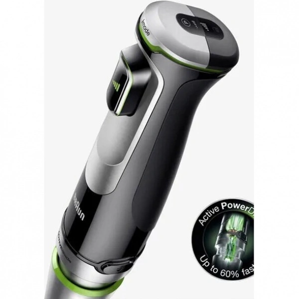 Именно такой должна быть действительно хорошая кулинарная техника. И купив погружной блендер Braun MQ 9138 XI, вы сможете в очередной раз убедиться, что продукция компании полностью отвечает современным требованиям. При относительно небольших размерах и массе блендер оснащен мощным 1200-ваттным моторным блоком с оригинальной системой контроля скорости, а также выделяется уникальными фирменными решениями, призванными облегчить вашу работу на кухне. Для того, чтобы изменить скорость вращения насадок, достаточно сильнее или слабее сжать рукоятку (переключатель встроен прямо в нее). Острые лезвия ActiveBlade за счет увеличенной режущей поверхности способны более качественно обрабатывать твердые продукты, а особая форма нижней части блендерной ноги также облегчает процесс обработки ингредиентов и уменьшает разбрызгивание/разлет мелких частиц (SplashControl). Готовить быстро и аккуратно очень просто!