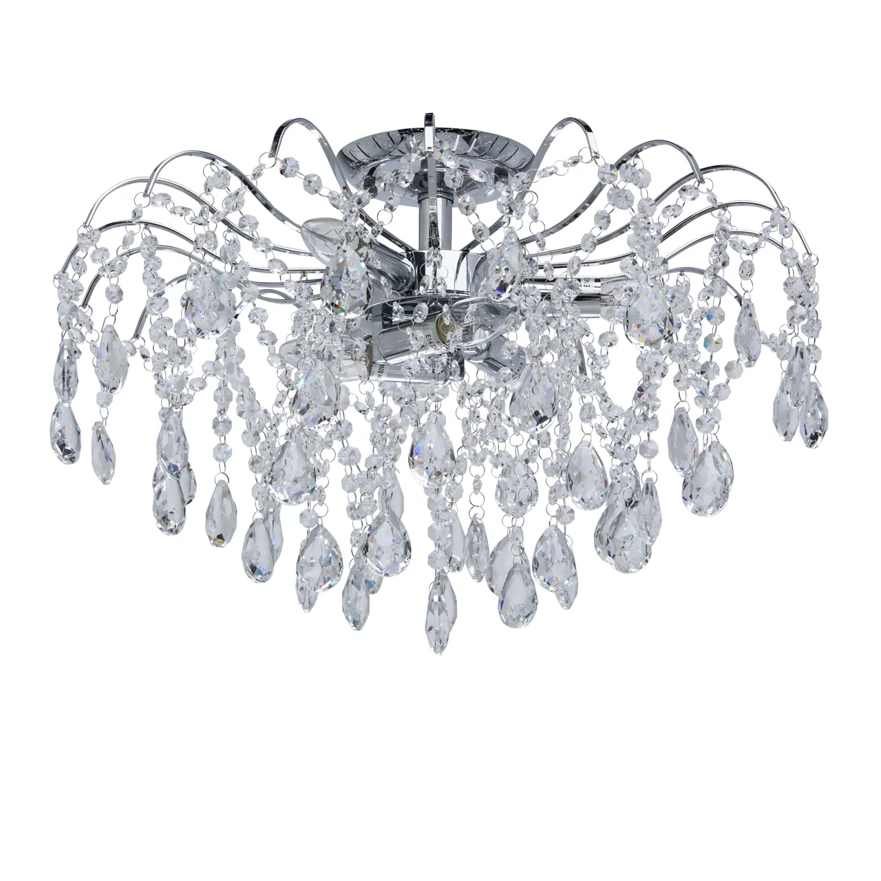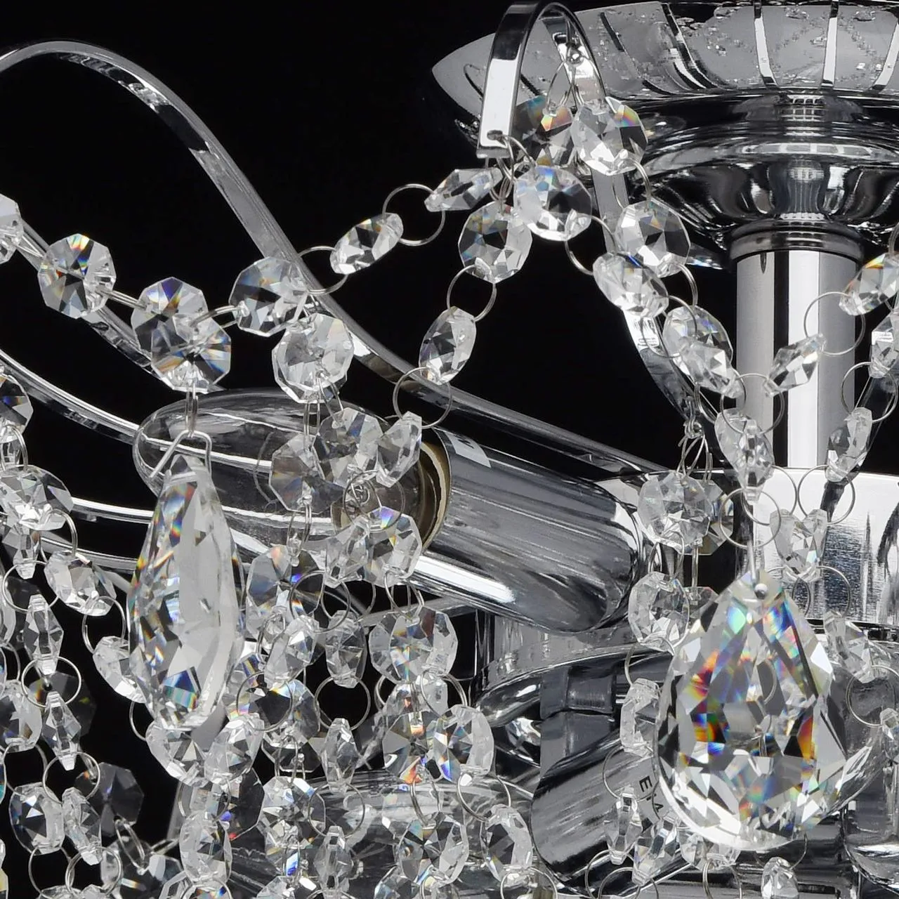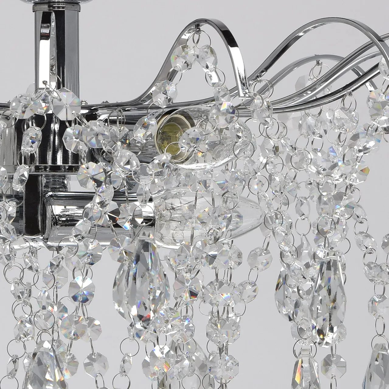 Торжественная грациозность отличает люстру из коллекции «Бриз». Основание из металла выполнено в трех цветовых вариациях: цвета хрома, никеля и золота - а значит, можно удачно подобрать нужный оттенок под цветовое решение интерьера. Гроздья подвесок из прозрачного хрустального стекла оригинальной формы огранки придает светильнику воздушную легкость и волшебную красоту. Он освежит обстановку комнаты и наполнит её праздничным сиянием.