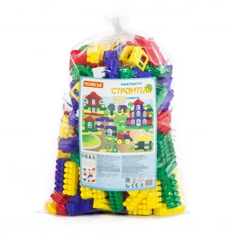 Описание товара Конструктор "Строитель" "Макси-плюс" 350 деталей в мешке