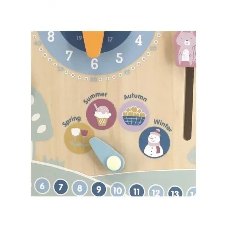 Деревянный календарь Viga Toys PolarB с часами на английском языке - уникальный инструмент обучения малышей от 3 лет. Дети смогут понимать и определять дни недели, месяцы, сезоны, время и погоду.Переставляя бегунки в виде симпатичных зверят по месяцам, дням неделям и датам, дети развивают интеллект, память и становятся наблюдательными. Подвижные стрелки на часах помогут научиться определять, который час. Есть также шкалы с названиями времен года и погоды. Развивающая игра с обучающим календарем тренирует мышление, в том числе абстрактное и логическое, расширяет кругозор.Каждый день дети смогут наблюдать за окружающим миром и лучше узнавать его с помощью календаря Viga Toys. Набор для обучения представлен на английском, и ребенок сможет выучить названия месяцев, дней недели, времен года, погоды на важнейшем международном языке. Обучающий календарь подходит для уроков английского как наглядный материал. Рекомендован для занятий дома, в детском саду, центре развития. Сочетается с педагогикой Монтессори.Деревянная основа 30x30 см не окрашена, указатели и надписи покрыты безопасными пастельными красками. Календарь серии PolarB с закругленными углами хорошо отшлифован для комфортных игр. Его можно разместить на столе или повесить на стену - предусмотрена петелька.Деревянный календарь с часами на английском языке от Viga Toys соответствует стандартам безопасности и качества детских игрушек EN71, ASTM.