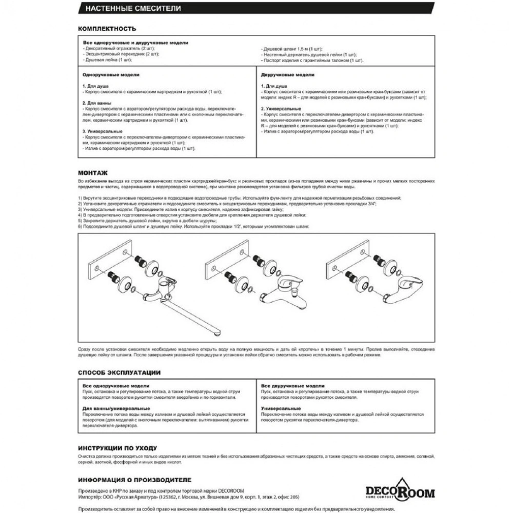 Смеситель для кухни DECOROOM DR71 (DR71021). Комплектация: смеситель, паспорт.