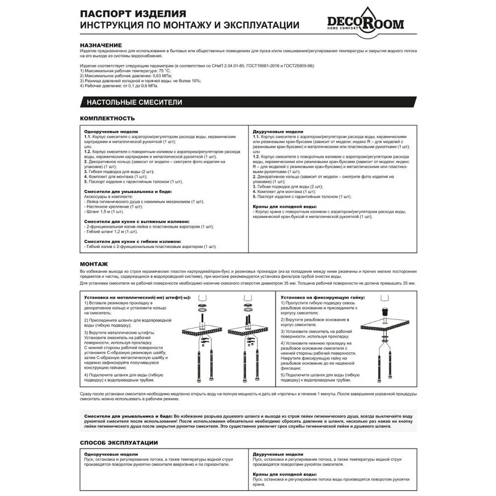 Отзывы о товаре Смеситель для кухни DECOROOM DR21 (DR21021)