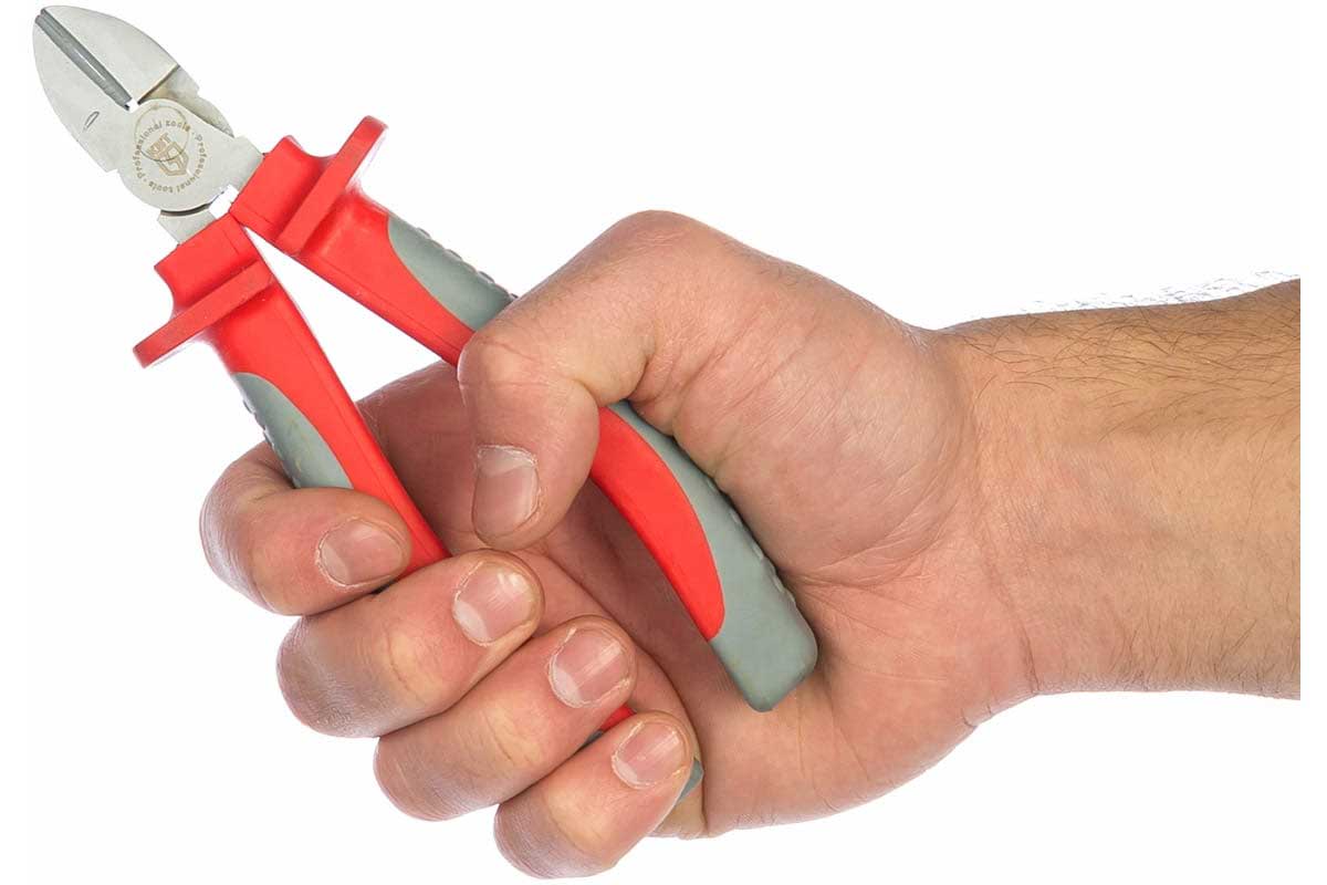 Для работы под напряжением до 1000 В Режущие кромки дополнительно закалены токами высокой частоты. HRC 62 Двухсторонняя диагональная заточка лезвий Резка: мягкой проволоки ? до 4 мм твердой проволоки ? до 2 мм Чистый и аккуратный рез Материал рабочей части: хром-ванадиевая сталь Обработка поверхности: матовое никелирование Компактные габариты Двухцветные многокомпонентные рукоятки с упорами для защиты от соскальзывания