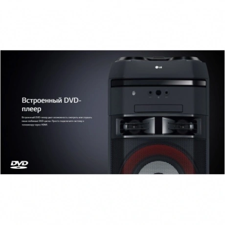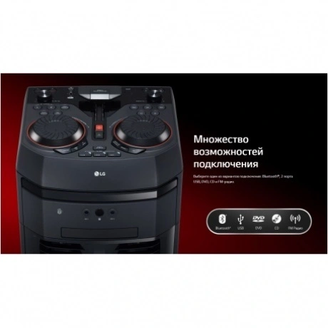 Домашняя аудиосистема LG XBOOM OL75DK формата 2.1 обладает мощностью 600 Вт, что позволяет устраивать веселые вечеринки с громкой музыкой. Модель идет в комплекте с FM-антенной, кабелем питания, микрофоном с батарейками и караоке-диском DVD. Вы можете управлять настройками аудиосистемы с помощью пульта от ТВ или смартфона. Режим TWS позволяет разным Bluetooth-устройствам работать в режиме единой стереосистемы. LG XBOOM OL75DK оснащена FM-тюнером с памятью на 50 станций, проигрывателем дисков CD/DVD, USB-портом для прослушивания и записи музыки на внешние накопители. Вы можете использовать 19 предустановок эквалайзера, настраивать громкость вокала и микрофона, тональность голоса. Есть интересные функции подсветки, караоке, усиления низких частот (Bass Boost), DJ Pro, конструктора сэмплов и включения аудиоэффектов.