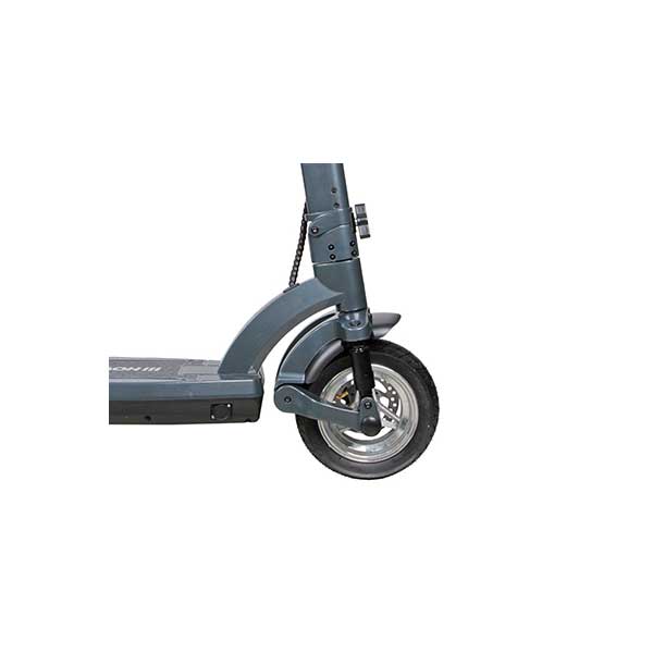 Мощный, стильный и многофункциональный электросамокат. Мотор-колесо мощностью 350W, расположенное сзади, позволяет развивать скорость до 25 км/ч. Плавность хода на любых дорожных поверхностях обеспечивается широкими надувными колесами размерностью 9 дюймов, а также передней и задней подвеской. Для большей безопасности спереди и сзади установлены дисковые тормоза.