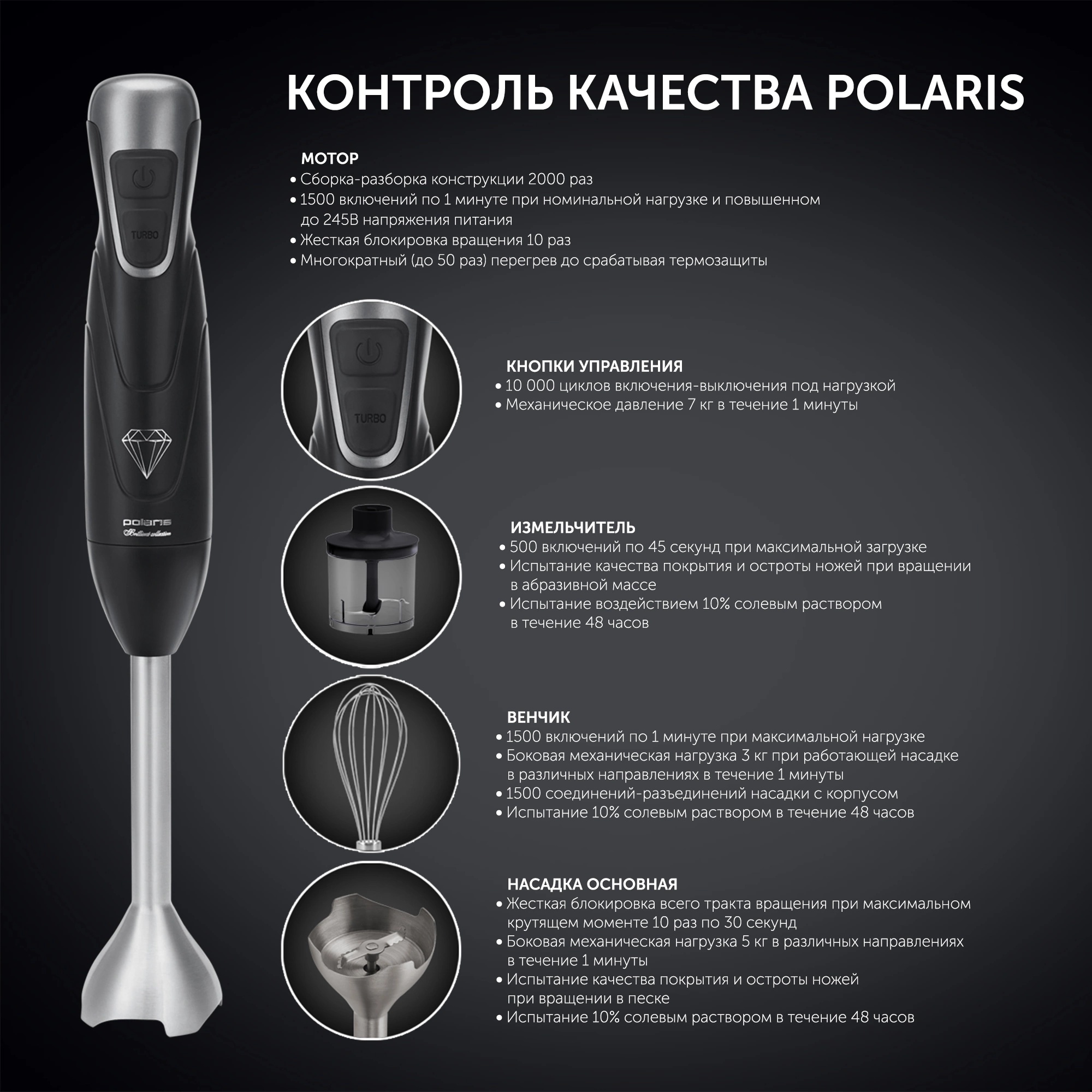 Описание товара Блендер погружной Polaris PHB 0848 черный