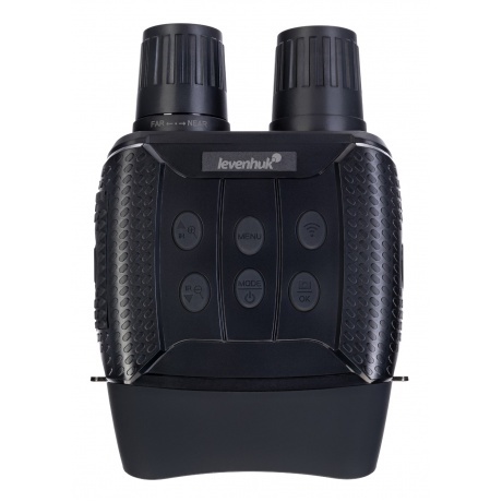 Перед вами цифровой бинокль ночного видения Levenhuk Halo 13x Wi-Fi – прибор, который позволяет видеть в полной темноте, а также может использоваться днем как обычный бинокль. Кроме того, этим ПНВ можно управлять при помощи мобильного устройства через беспроводную сеть Wi-Fi. Прибор будет незаменим при изучении незнакомой местности ночью, поможет обеспечить безопасность в походе по диким местам, станет отличным выбором для охоты, слежения за движущимися целями, охраны больших территорий. Оптические элементы прибора сделаны из стекла с просветляющим покрытием на основе диоксида кремния. Такое устройство оптики позволяет видеть яснее в полной темноте, так как мелкие детали просматриваются более четко. В дневное время вести наблюдения можно на расстоянии от 3 метров и до бесконечности, а в ночное время максимальная дальность обнаружения составляет 300 метров. ИК-подсветка имеет 7 уровней яркости, что позволяет гибко настраивать прибор. Для экономии заряда батареек яркость можно уменьшать до минимума, а в случаях, когда важнее эффективность, переключать на максимум. И обратите внимание: при ночных наблюдениях изображение в ПНВ будет черно-белым, при дневных – цветным. Бинокль ночного видения снабжен рекордером для фото- и видеозаписи. Доступно два разрешения картинки: 1280х960 пикс и 640x480 пикс. Меньшее обычно используется, если на карте памяти мало места. Все видео пишутся с кадровой частотой 30 кадров в секунду, т. е. они плавные, без рывков. Минимальный уровень плавности доступен уже на 24 кадрах в секунду, но в Levenhuk Halo 13x Wi-Fi частота увеличена для получения более приятной глазу картинки. Отснятый материал можно просматривать прямо на экране прибора. Для переноса данных на компьютер используется комплектный кабель miniUSB.
