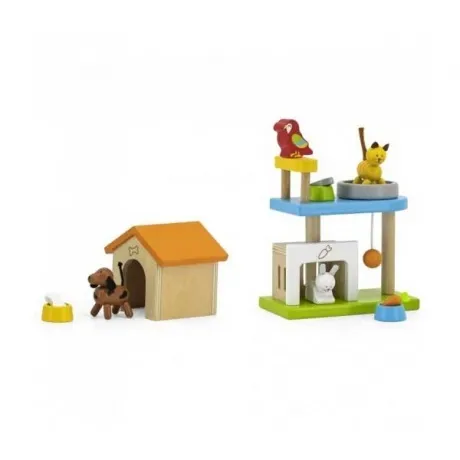 Деревянный набор животных - прекрасное дополнение любого кукольного домика. В набор входят различные животные - милый щенок, котенок, зайка, попугай, их домики и мини-площадка. Дети любят придумывать истории, и этот набор - отличный способ стимулировать детское воображение и творческие способности.
