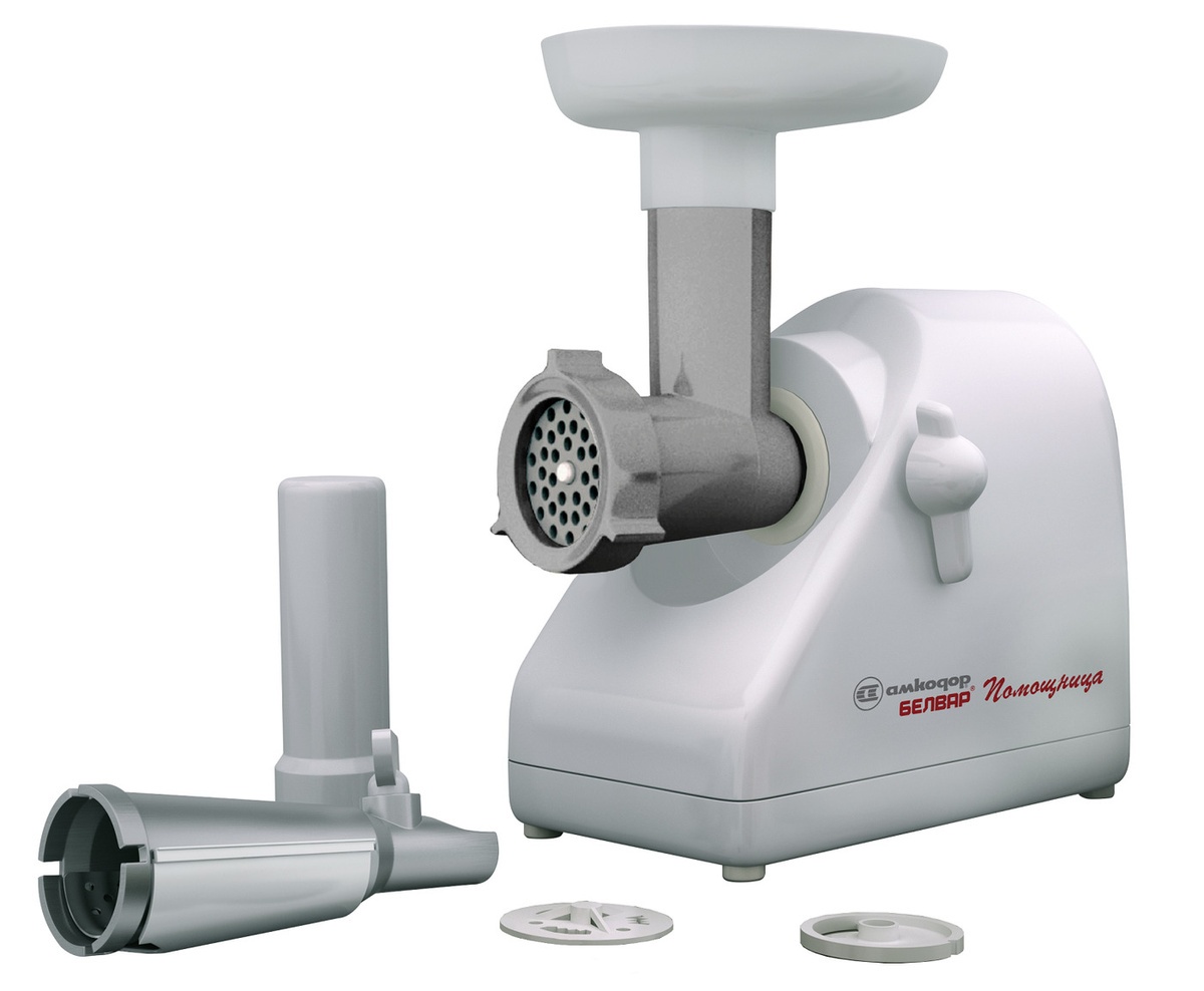 Электромясорубка Белвар Помощница KЭM-П2У 304-05 станет прекрасным помощницей на кухне, высокая мощность позволяет перерабатывать любые виды мяса. Корпус выполнен из прочного пластика, детали мясорубки выполнены из металла, благодаря чему Помощница прослужит вам долгие годы. Для максимального удобства в использовании предусмотрены прорезиненные ножки, кнопка Реверс, две сменные решетки в комплекте. Дополнительно предусмотрена насадка соковыжималка, с ее помощью вы легко переработаете овощи и фрукты.