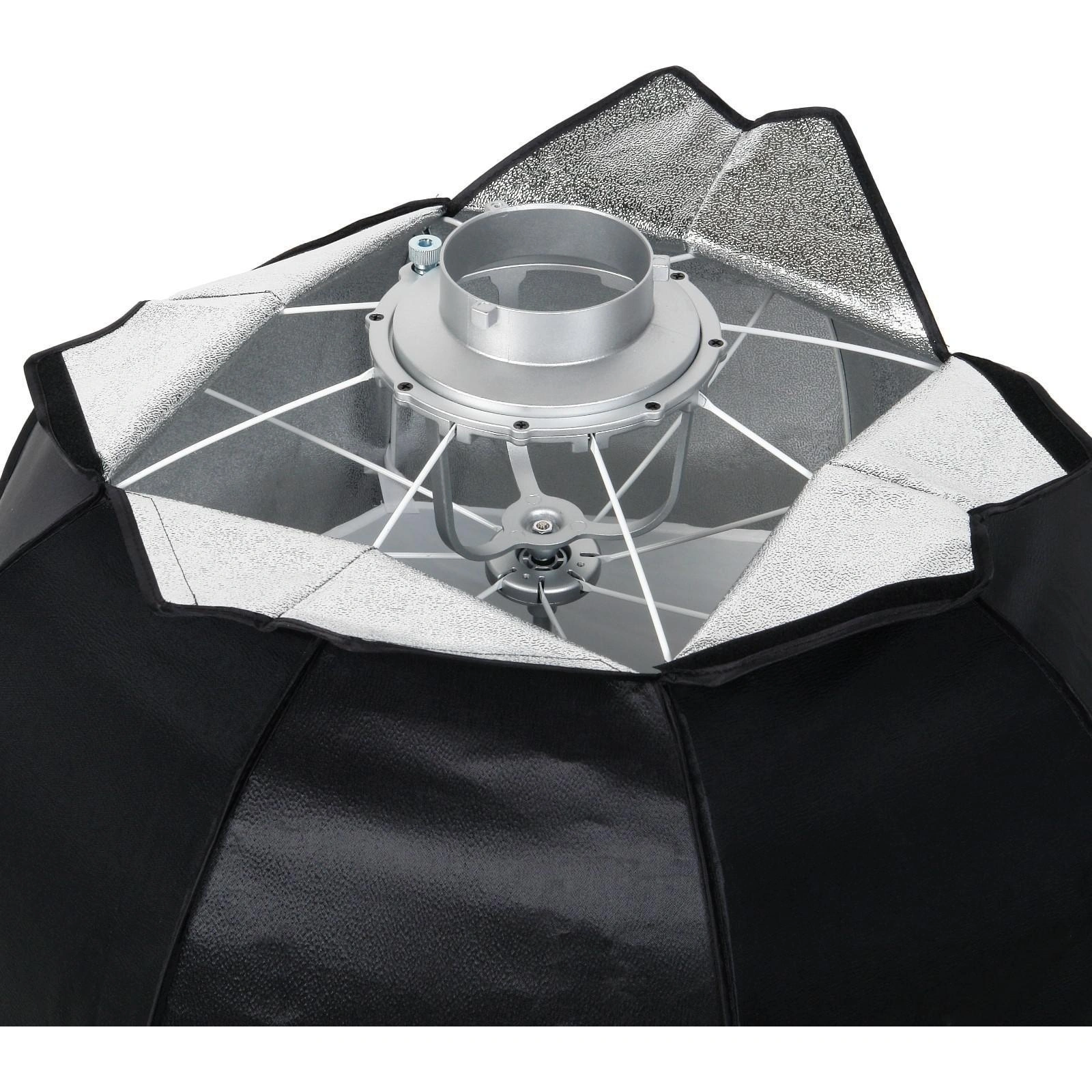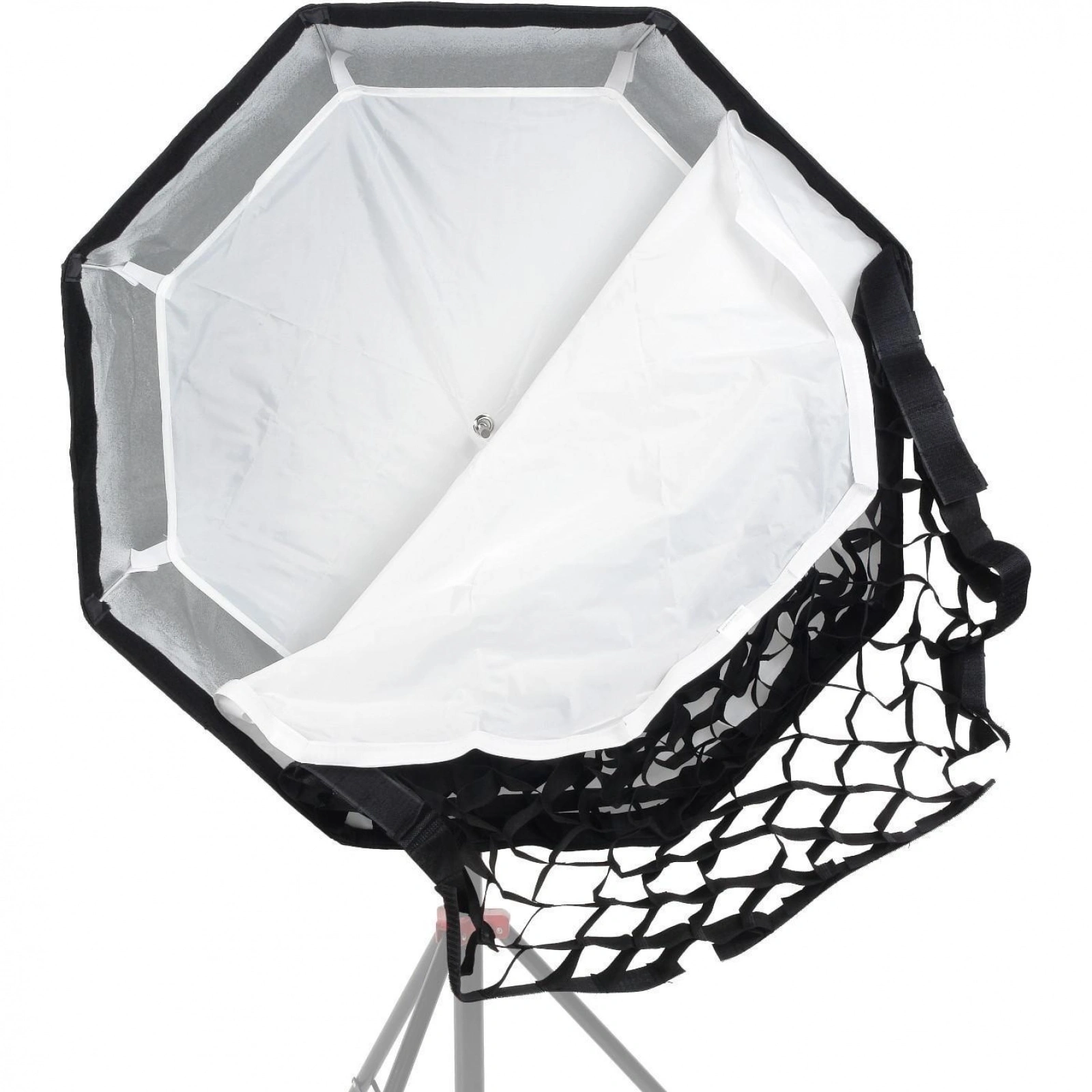 Быстроскладной восьмиугольный софтбокс зонтичного типа с байонетом Bowens (кольцо сменное), для создания мягкого рассеянного освещения без резких теней и бликов. Размер 80 см, отражающая поверхность серебро, тканевые соты, чехол в комплекте.