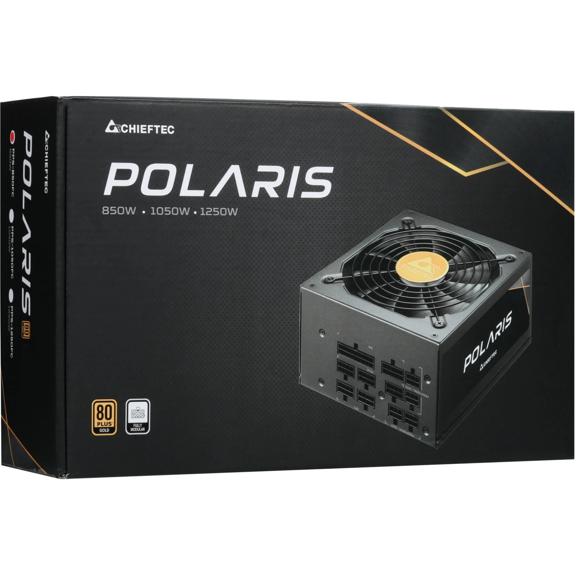 850-ваттный блок питания Chieftec POLARIS 850W [PPS-850FC] в черном корпусе ориентирован на работу в составе производительного игрового или универсального компьютера. Мощность устройства достаточна для бесперебойного функционирования многоядерного процессора, геймерского видеоадаптера, многочисленных контроллеров, адаптеров, накопителей и других компонентов ПК. Энергоэффективность модели выражает соответствие требованиям сертификата 80 PLUS Gold.