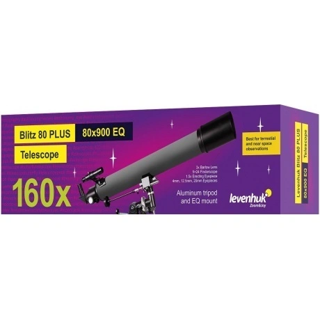 Телескоп Levenhuk Blitz 80 PLUS – ахроматический рефрактор для начинающего, но амбициозного пользователя. С одной стороны, этот телескоп прост в управлении, с другой – позволяет проводить широкий спектр наблюдений. Изучать можно не только Луну, как в менее апертуристые модели, но и многие планеты Солнечной системы, и даже дальний космос. Также этот телескоп может достойно проявить себя в качестве зрительной трубы.