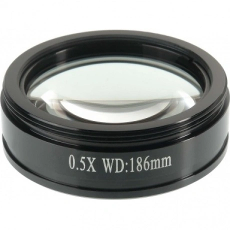 Объектив для стереомикроскопов серии MC-A, увеличение 0,5х. Планахромат. При помощи резьбового соединения накручивается на объектив стереомикроскопа серии MC-A – Микромед MC-А-0880-tilt, Микроскоп стерео Микромед MC-А-0880. Уменьшает увеличение в 2 раза, увеличивает рабочее расстояние панкратического объектива.