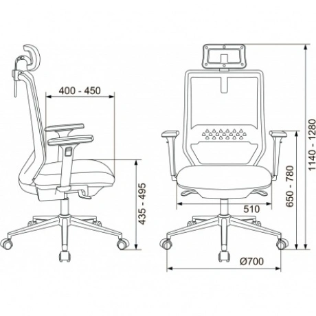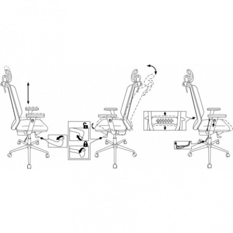 Синхромеханизм качания с регулировкой под вес и возможностью фиксации в нескольких положениях. Регулировка глубины сиденья(слайдер)с помощью рычага (диапазон 5 см). Подголовник, регулируемый по высоте и углу наклона. Поясничная поддержка спины с регулировкой по высоте. Подлокотники 3D. Регулировка высоты (газлифт). Крестовина металлическая хромированная. Колеса для паркета и ламината. Соответствует стандарту BIFMA. Масса: 17,00 кг. Объем: 0,177 м3. Габариты (мм): 825 х 320 х 670.