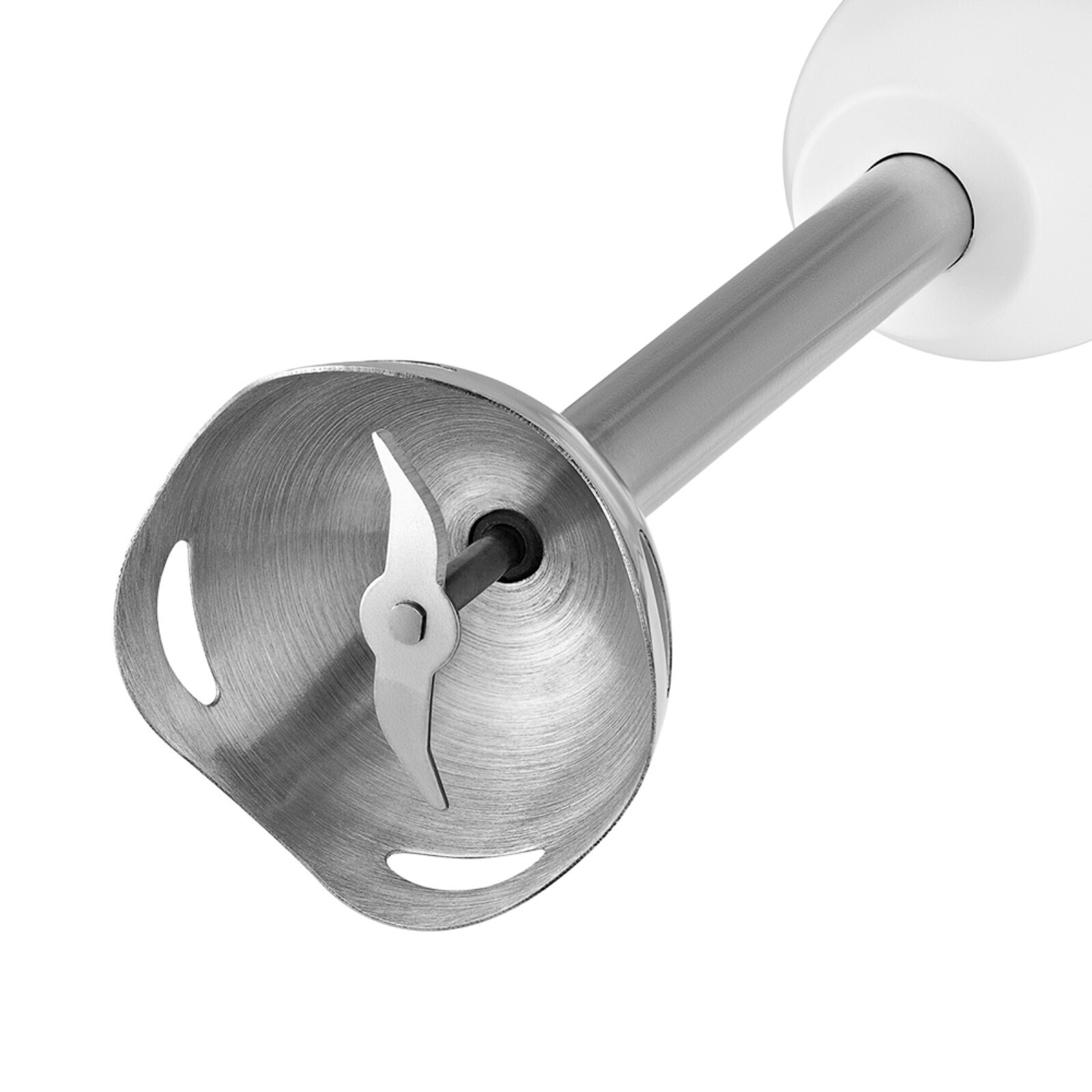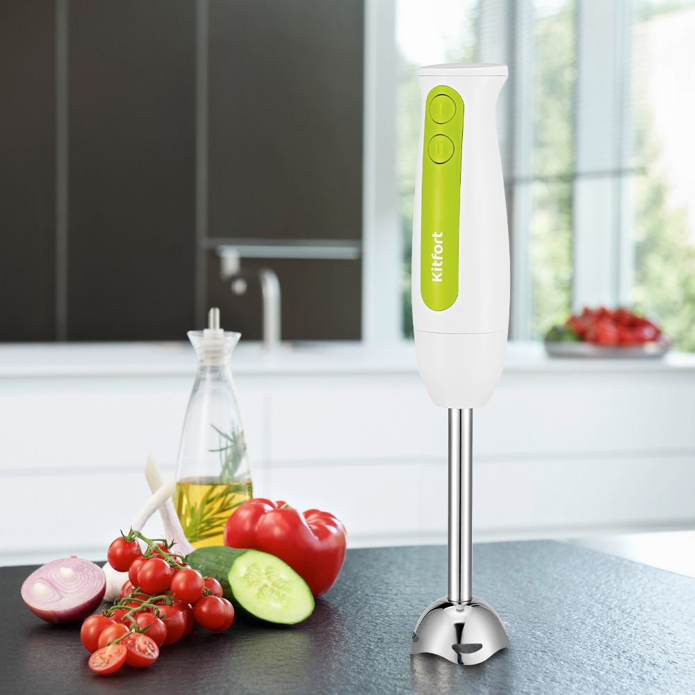 Блендер Kitfort КТ-3051-2Погружной блендер Kitfort КТ-3051 предназначен для смешивания фруктовых и фитнес-напитков, супов-пюре, соусов, муссов, молочных коктейлей и детского питания. Блендер оснащен двумя скоростями работы и мощным двигателем на 500–600 Вт, рассчитанным на длительный срок эксплуатации. Нож блендера выполнен из нержавеющей стали, что обеспечивает долгий срок службы. Ножка блендера легко снимается с моторного блока, поэтому уход за устройством не составит труда. Благодаря компактным размерам погружной блендер KT-3051 не займет много места на вашей кухне. Устройство очень удобно в использовании — достаточно погрузить ножку блендера в емкость с ингредиентами и нажать на нужную кнопку скорости. Блендер поможет смешать ингредиенты как для маленькой кружки смузи, так и для большой кастрюли крем-супа. Использование погружного блендера позволяет непрерывно наблюдать за процессом приготовления, благодаря чему вы всегда будете знать, в какой момент остановить смешивание для достижения желаемой консистенции блюда или напитка.