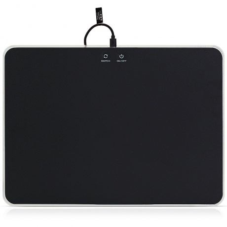 Твёрдый коврик для компьютерной мышки с подсветкой. Прочная нейлоновая плёнка обеспечивает лёгкое скольжение мышки по поверхности. Пластиковая основа позволяет разместить коврик даже на неровной поверхности. Вспененная резиновая подложка препятствует смещению самого коврика. Переключаемая RGB подсветка имеет несколько профилей, сменяемых нажатием кнопки SWITCH: красный, жёлтый, зелёный, голубой, синий, фиолетовый, белый, переливающийся (изменение яркости - нажатие On;Off, отключение подсветки - удержание On;Off).