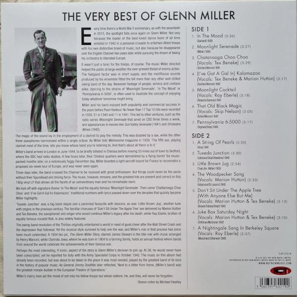 Glenn Miller - The Very Best Of (5060397602190) виниловая пластинка - стоимость товара 2022 руб. в интернет-магазине КотоФото. Характеристики, фото и описание доступны на карточке товара. Купить товар можно на сайте онлайн или заказать по телефону 8(812)426-98-99 в Санкт-Петербурге, а забрать в пункте самовывоза или оформить доставку на дом.