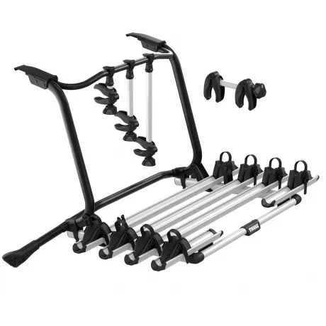 Переходник для крепления велосипедов Thule WanderWay 4th Bike Adapter увеличивает количество перевозимых велосипедов на один. Ручки Thule AcuTight щелкают при достижении оптимального крутящего момента. Удобная фиксация колес при помощи регулируемых держателей с пряжками прижимного типа. Простота установки велосипедов благодаря регулируемым рейлингам, которые можно двигать слева направо.