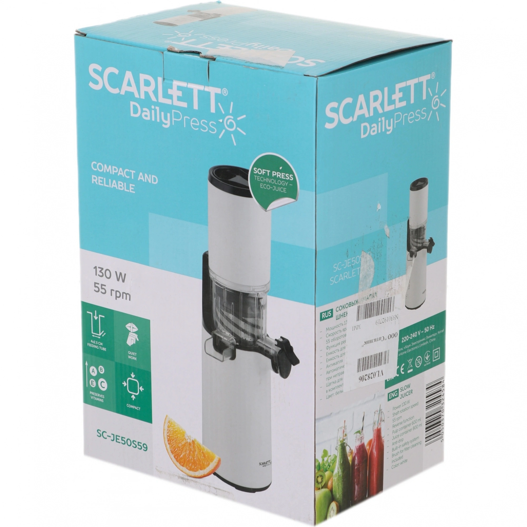 Соковыжималка Scarlett SC-JE50S59 шнековая - фото, характеристики, описание и цена представлены на карточке товара. Для того, чтобы сразу узнать о поступлении этого товара в наш интернет-магазин, вам надо подписаться на уведомление по email, оставив адрес своей электронной почты в форме выше на данной странице.