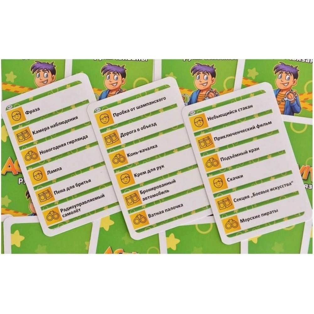 330 новых слов и словосочетаний, которые игрокам не терпится объяснить и разгадать. Но со связанными руками это сделать не так-то просто! При этом разрешается использовать только пантомиму и воспроизведение звуков!