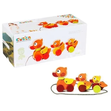 Каталка CUBIKA Уточки 13722 представляет собой семью из 3-х уточек, соединенных между собой, которая катится на веревочке. У уточек шевелятся крылышки. Игрушка-каталка очень пригодится малышу, когда он начинает делать первые, еще не очень уверенные шаги, потому что развивает в игровой форме его координацию движений, разрабатывает вестибулярный аппарат и тренирует многие группы мышц. Игрушка-каталка станет верным спутником малыша и будет забавлять его своим красочным видом. Все компоненты игрушки изготовлены из высококачественного натурального дерева карпатского бука и ясеня. Тщательная обработка делает их чрезвычайно гладкими и приятными на ощупь, а закругленные углы обеспечивают безопасную игру для активных малышей. Пеструю расцветку обеспечивают нетоксичные безопасные для здоровья краски на водной основе.