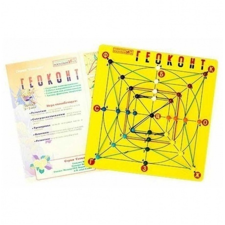 Игра Геоконт развивает сенсорику, мелкую моторику, логику, фантазию, учит силуэтному конструированию, совершенствует интеллект и развивает творческие и логические способности ребенка. Согласно определенным заданиям, ребенок натягивает резинки на гвоздики так, что создает предметные силуэты, геометрические фигуры, узоры, цифры, буквы - по образцу, словесному алгоритму и собственному замыслу.
