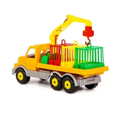 Серия автомобилей Сталкер представлена специальной техникой: автомобиль-самосвал, автомобиль бортовой тентовый, контейнеровоз, автомобиль-лесовоз, автомобиль бортовой тентовый с прицепом, самосвал с полуприцепом, автомобиль с полуприцепом-цистерной, автомобиль бортовой и другие. Данный автомобиль предназначен для перевозки игрушечных зверей. В комплекте с автомобилем идут 3 клетки с открывающимися дверцами, кроме того, автомобиль оборудован подвижным краном с манипулятором. Кран-манипулятор на автомобиле можно использовать для погрузки и разгрузки клеток. Игрушка изготовлена из качественных материалов, имеет яркую расцветку. Прочная конструкция - это ещё один плюс автомобилей данной серии.