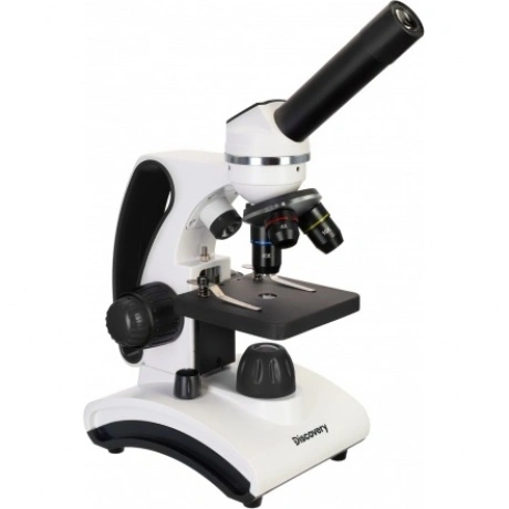 С монокулярным микроскопом Discovery Pico учеба в школе или колледже станет намного интереснее и результативнее. Он поможет погрузиться в увлекательный микромир и покажет простейших и структуру многих объектов окружающего мира. Также с помощью этого микроскопа можно проводить простые научные опыты и изучать жизнь в капле воды. В комплектацию включена познавательная книга о микромире, которая будет полезна начинающим биологам. Насадка микроскопа отклонена под небольшим углом в 30°, что повышает комфорт длительных наблюдений. Также насадку можно поворачивать вокруг оси на 360° – такая функция упрощает работу в группе, когда один и тот же образец должны посмотреть несколько человек. Все оптические элементы сделаны из стекла. Объективы 4х, 10х и 40х ахроматические, а окуляр 10х – широкопольный. Дополнительно объектив 40х имеет пружинящую оправу – защиту передней линзы от случайных повреждений. Общее увеличение микроскопа находится в диапазоне от 40 до 400 крат. Источник освещения – два светодиода, расположенные сверху и снизу от предметного столика. Благодаря этому наблюдения можно проводить как в проходящем, так и в отраженном свете. Яркость подсветки регулируется. Для работы подсветки требуются или подключение к сети переменного тока, или установленные батарейки. Сетевой адаптер включен в комплектацию. Еще одна особенность микроскопа – наличие точной фокусировки. Она позволяет быстрее и более плавно настраивать резкость картинки. Отметим наличие зажимов у предметного столика и диска с диафрагмами для регулировки светового потока от нижнего осветителя. Книга «Невидимый мир», включенная в комплектацию, упростит старт работы с прибором. Она рассказывает об устройстве микроскопа, о том, что можно наблюдать с его помощью, и о том, какие научные опыты можно провести прямо дома. Книга ярко иллюстрирована и написана «живым» языком без сложных для понимания терминов.