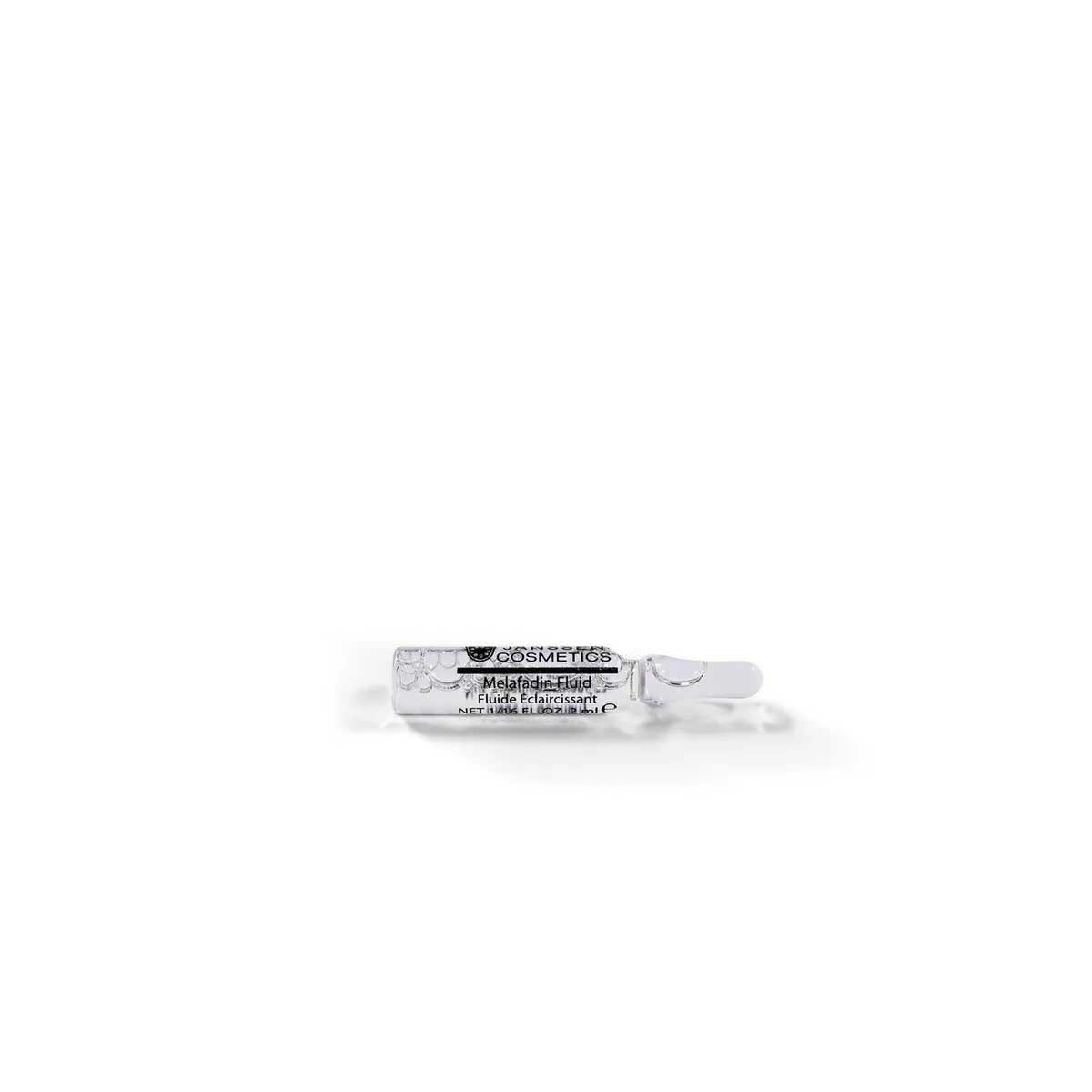 Melafadin Fluid – это специальный концентрат, содержащий высокоэффективные осветляющие компоненты, которые подавляют образование меланина на его начальной стадии: они блокируют процесс созревания меланина и препятствуют его транспортировке в роговой слой кожи. Гиалуроновая кислота, входящая в состав ампульного концентрата Melafadin Fluid, обеспечивает дополнительное пролонгированное увлажнение. При регулярном применении ампул и надлежащей защите кожи от УФ-лучей пигментные пятна становятся бледнее, кожа приобретает ровный и светлый оттенок.