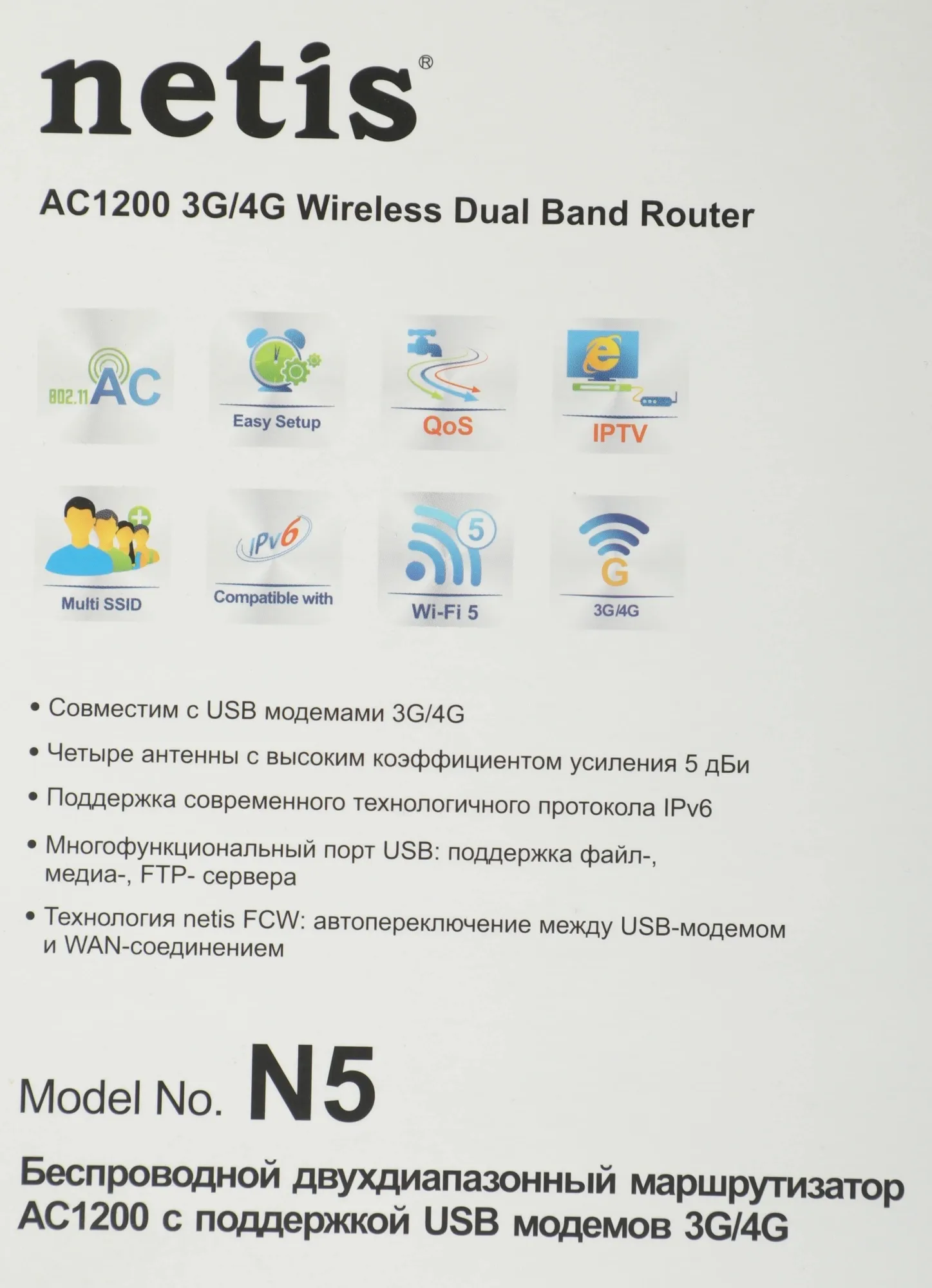 Описание товара Wi-Fi роутер Netis 1200MBPS LTE DUAL BAND N5