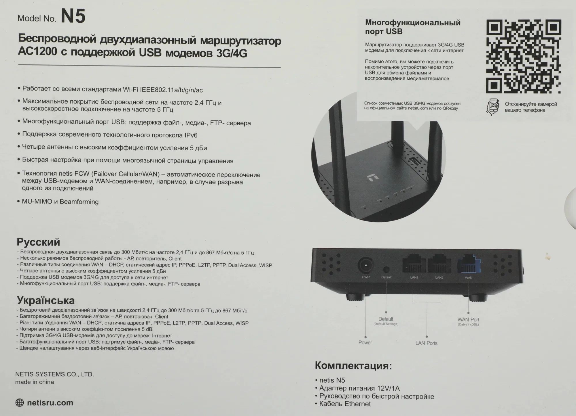 Отзывы о товаре Wi-Fi роутер Netis 1200MBPS LTE DUAL BAND N5