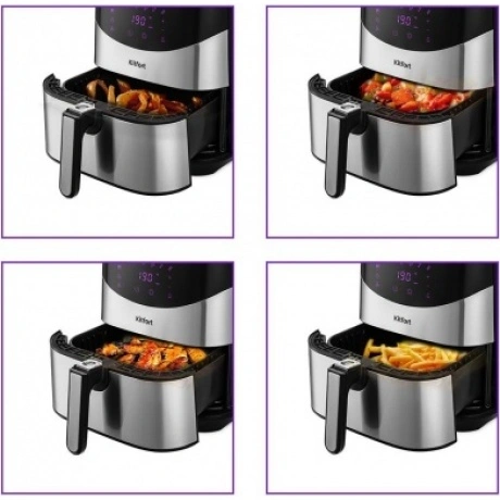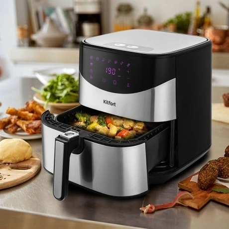 Стильный аэрогриль Kitfort КТ-2231 может использоваться как аэрогриль, а также как аэрофритюрница и духовка и позволяет готовить большинство продуктов с минимальным количеством масла или вовсе без его добавления.